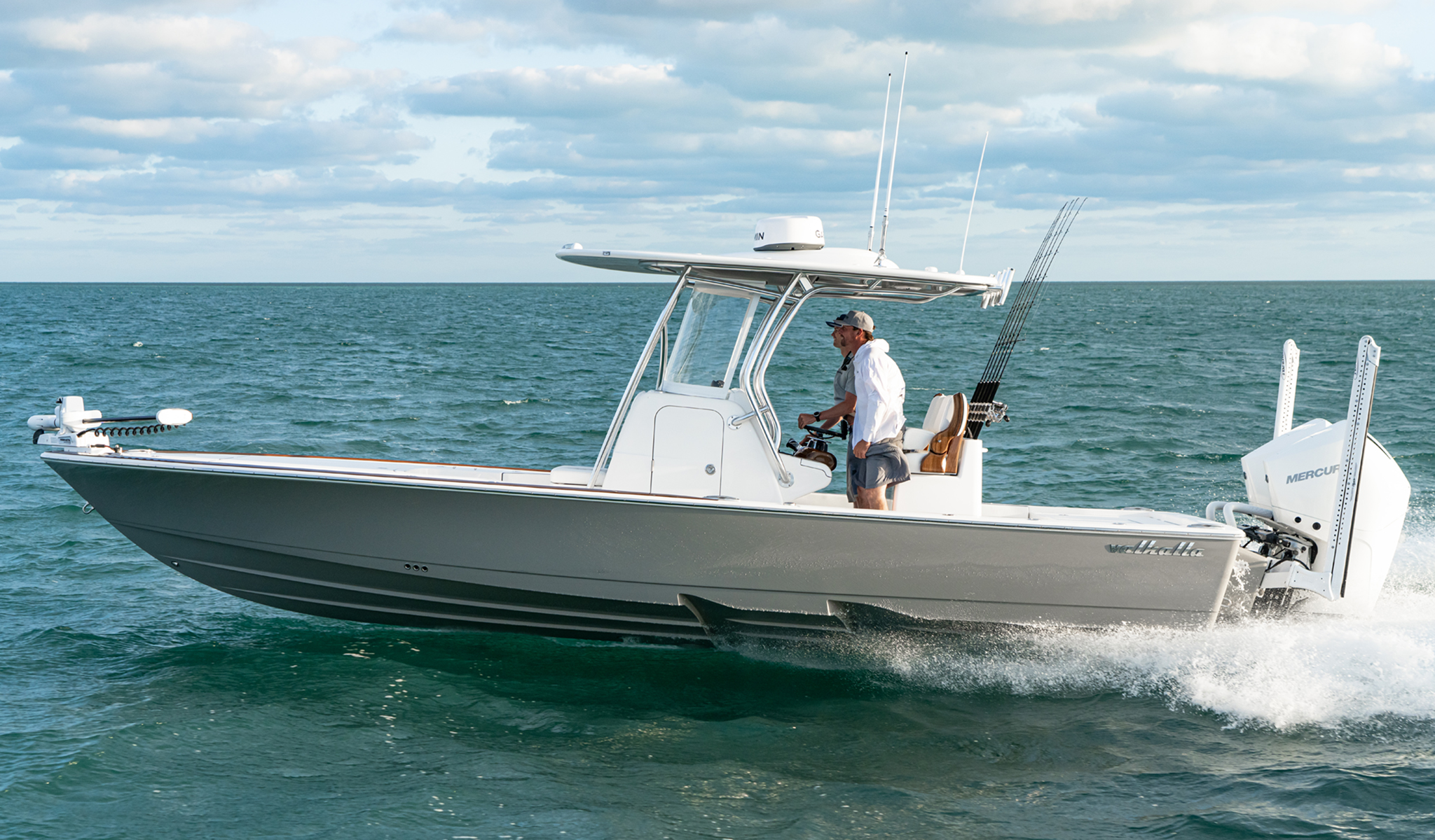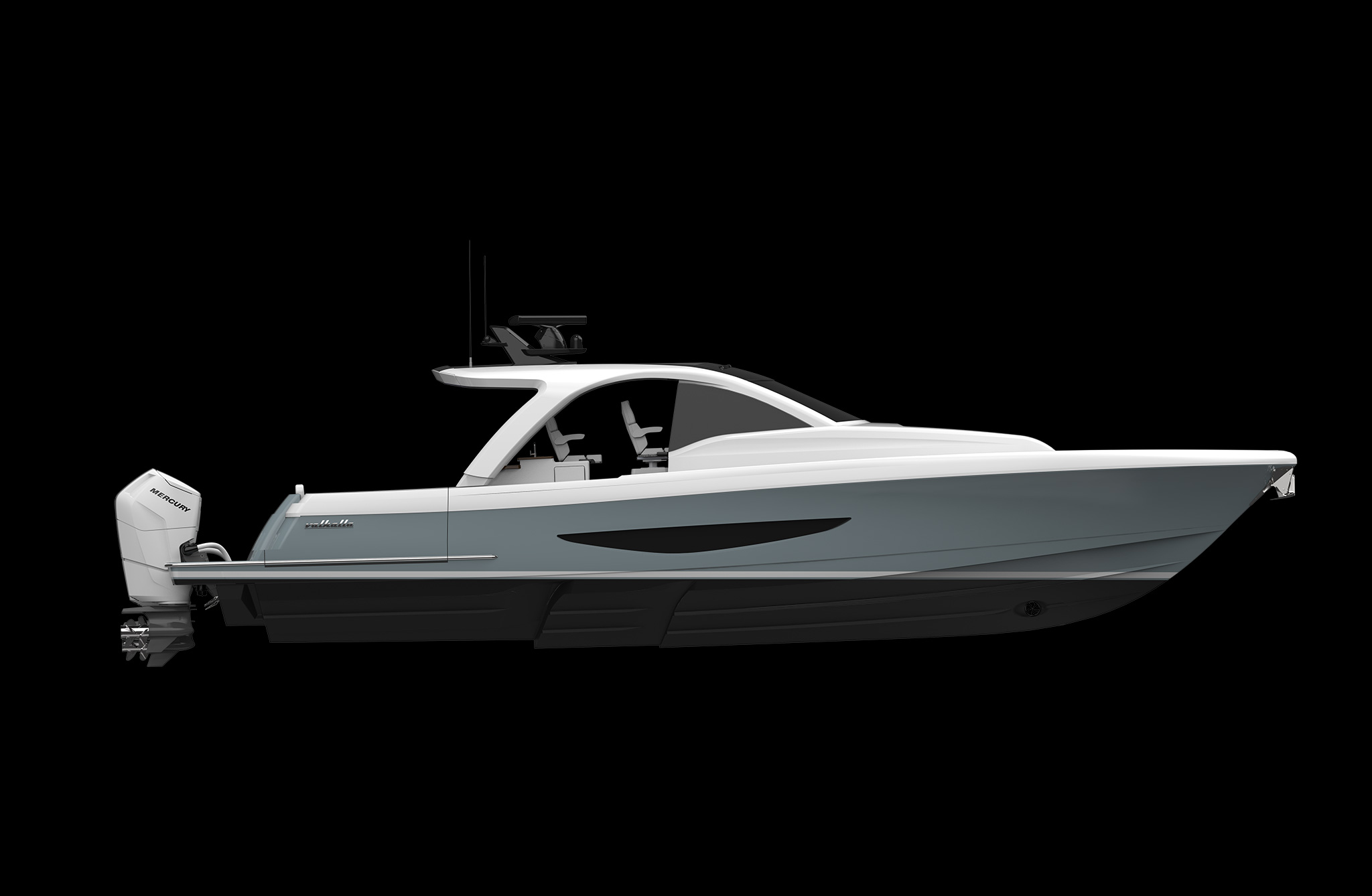 Valhalla Boatworks offers outboards from both Mercury and Yamaha in twin, triple or quad applications depending on the model. The efficiency of the stepped-hull design combined with the advanced outboard technology provide best-in-class speed, fuel economy and range. Low engine-noise and vibration levels, electronic power steering and optional joystick helm control systems with GPS station-keeping make operating your Valhalla an enjoyable, stress-free experience.